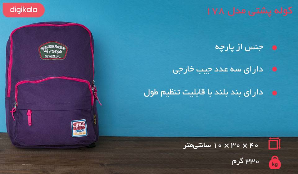 اگر به دنبال کیفی کوچک و سبک برای استفادهی روزمرهی خود هستید کولهپشتی مدل 178 انتخابی مناسب برای خرید و استفادهی شما خواهد بود. این کیف که ابعادی بسیار مناسب برای استفادهی دانشجویان دارد به راحتی میتواند اغلب وسایل مورد نیاز شما را با ظاهری زیبا و جذاب برای شما حمل کند. یکی از بهترین مشخصههای این مدل برخورداری از رنگهای متنوع است که میتواند به سادگی با استایلهای متفاوت شما سازگار گردد. این کیف زیپهای بزرگی دارد که همگی تا انتها باز میشوند و میتوانند دسترسی خوبی به کاربر برای استفاده و دستیابی به وسایل او بدهد. همچنین سری زیپهای بزرگ این کیف استفاده از آنها را آسانتر میکند. قسمت پشتی این کوله از جنسی شبیه به پارچهی مش که در لباسهای ورزشی به کار گرفته میشود ساخته شده است و به این ترتیب تعریق کمتری را در روزهای گرم سال در پشت شما خواهد داشت. خرید و استفاده از این کوله پشتی مناسب برای آقایان و خانمهای خوشسلیقه خواهد بود.