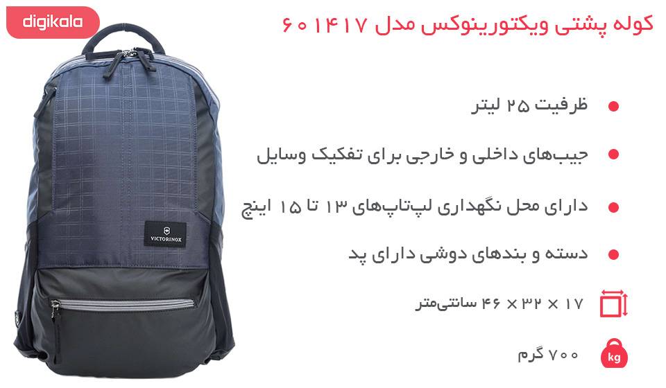 ویژگیهای کلی کوله پشتی ویکتورینوکس مدل 601417