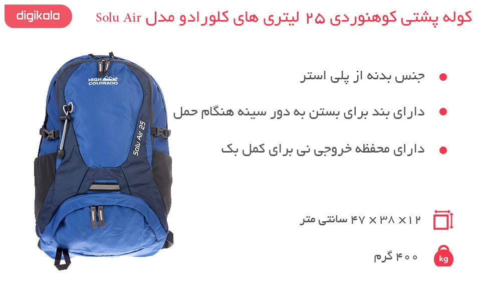 مشخصات کلی کوله پشتی کوهنوردی 25 لیتری های کلورادو مدل Solu Air