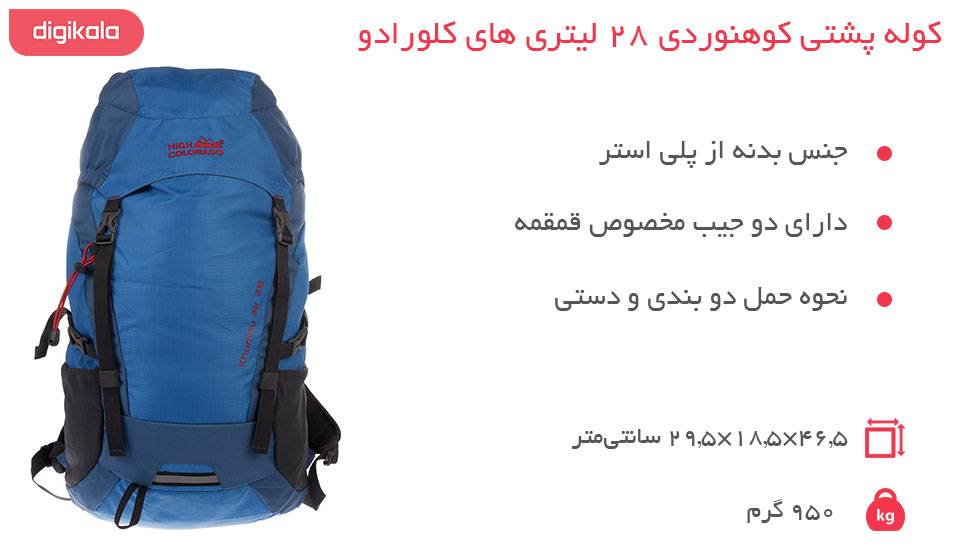 کولهپشتی «های کلورادو» مدل «Khumbu Air» یکی از مناسبترین محصولات موجود برای کوهنوردی و طبیعتگردی است. این کوله ظرفیتی برابر با 28 لیتر دارد و برای یک برنامهی بهنسبت کوتاهمدت کوهنوردی یا حتی سفر گزینهای مطلوب محسوب میشود. برای پیشگیری از خیسشدن کوله و وسایل داخلش، یک روکش ضدباران برای آن طراحی شده است. با استفاده از این کاور، هنگام بارش باران و برف، کولهپشتی خیس نخواهد شد. علاوهبر محفظهی اصلی و یک جیب داخلی، دو جیب نیز در طرفین وجود دارند که برای بطری آب و قمقمه طراحی شدهاند. قسمت پشت کوله دارای یک صفحهی مشبک است تا در زمان حمل با به جریان انداختن هوا، موجب کاهش تعریق در سطح پوست شود. این محصول یک بند کوچک و دو بند قابلتنظیم دارد تا بهسادگی آن را در هر جایی حمل کنید. یکی از ویژگیهای جالب این مدل، وجود بند روی کمر است که با کمک آن قادر هستید با تسلط و راحتی بیشتری کوله را همراه داشته باشید. فضای داخلی کافی و جیب داخلی و جیبهای خارجی، استفاده از الیاف مقاوم و بادوام پلیاستر و... ازجمله ویژگیهای کولهپشتی «های کلورادو» هستند که آن را برای کوهنوردی، سفرهای کوتاهمدت و... به انتخابی مناسب تبدیل میکنند.