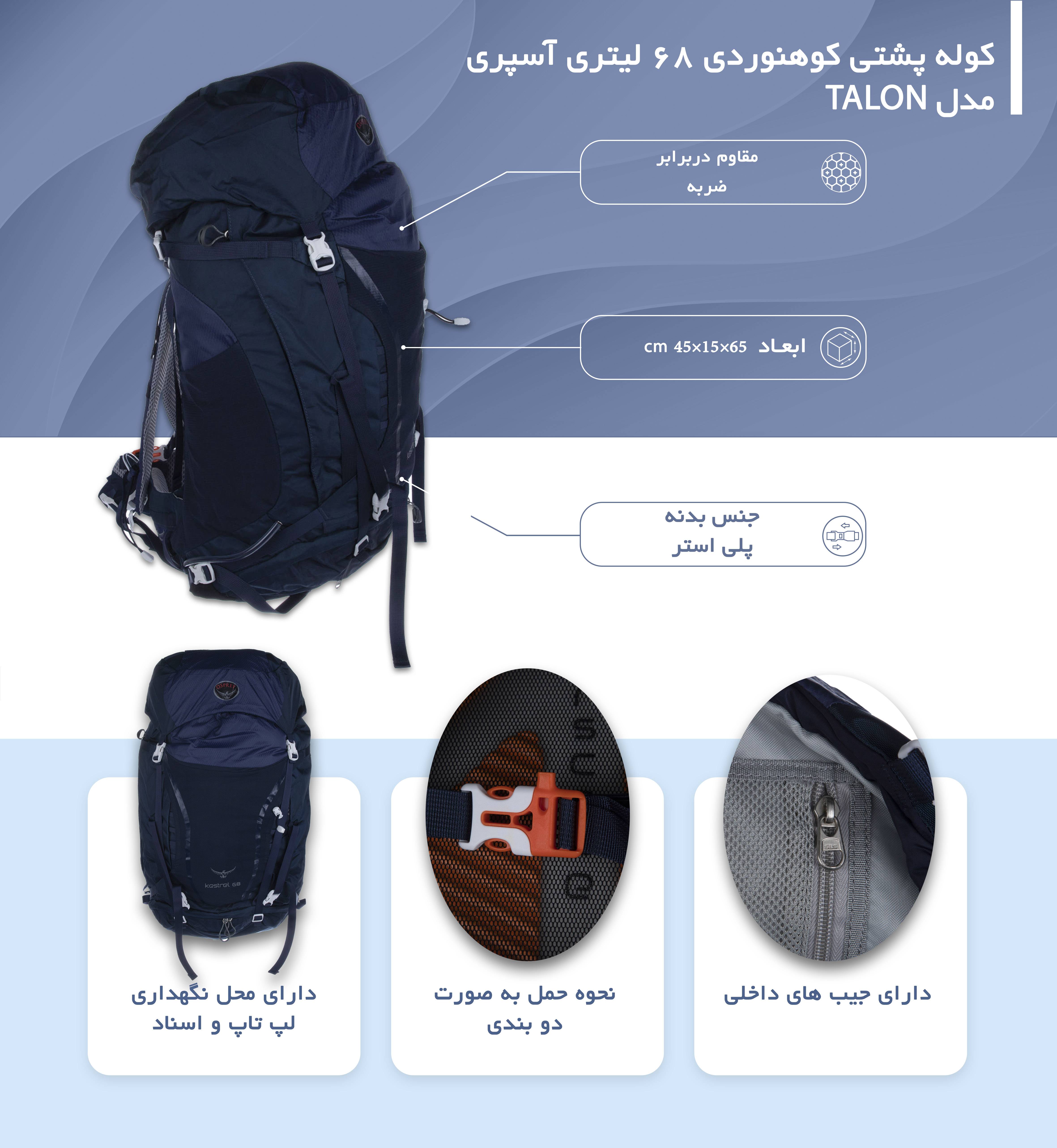 کوله پشتی کوهنوردی 68 لیتری آسپری مدل talon کد ba 207