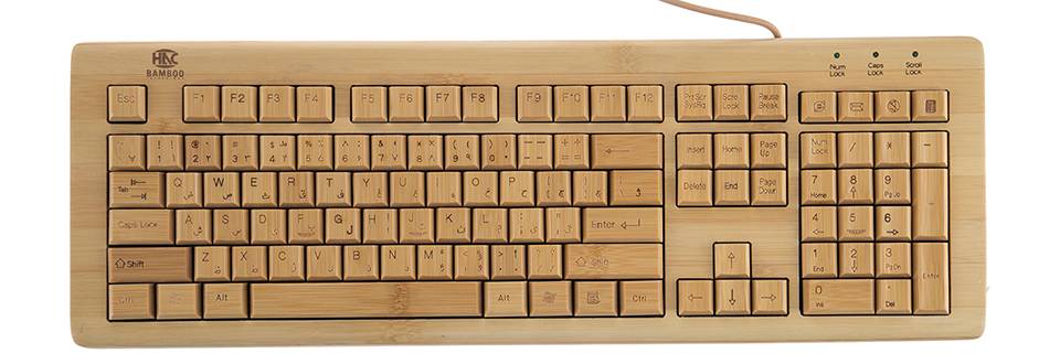 کیبورد این محصول دارای 4 عدد کلید میانبر بسیار مفید است که توسط آن‌ها شما می‌توانید صدا را قطع و وصل کنید و ایمیل، مرورگر و ماشین‌حساب را باز کنید. به علت کیبوردهای بزرگی که این محصول بامبو دارد، نمی‌توانیم این کیبورد را در رده کیبوردهای جمع‌وجور قرار دهیم. البته این نکته به معنی نقطه‌ضعف 5122 نیست؛ چراکه ابعاد بزرگ کیبورد نشان‌دهنده کلیدهای بزرگ روی آن است و درنتیجه در استفاده از این محصول عمل تایپ آسان‌تر انجام  می‌شود. دکمه‌های کیبورد این باندل، باکیفیت هستند و به همین دلیل تایپ راحت‌تری را نسبت به کیبوردهای معمولی برای کاربر فراهم می‌کنند. این کیبورد را می‌توان محصولی کلاسیک دانست؛ چراکه با استفاده از کابل و درگاه USB به کامپیوتر متصل می‌شود  و در آن خبری از کلیدهای اضافی نیست. اما نکته‌ای که این کیبورد را از یک کیبورد ساده معمولی متمایز می‌کند، جنس و نوع ساخت آن است. کلیدهای این کیبورد دارای کمی انحنا هستند تا انگشتان کاربر به‌خوبی روی کلیدها بنشیند. همان‌طور که اشاره کردیم جنس این محصول از چوب بامبو است و این کیبورد به شکل دست‌ساز ساخته شده است. دست‌ساز بودن این کیبورد به این معنی است که ظرافت در طراحی آن حرف اول را می‌زند. در ساخت این کیبورد سعی شده است که کابلی هماهنگ و تقریباً همرنگ با کیبورد ارائه شود تا در ظاهر کیبورد تأثیر سویی نداشته باشد. کابل این کیبورد حدود 170 سانتی‌متر طول دارد و به دلیل قطر زیادی که دارد بعید است، به‌راحتی آسیب ببیند. این کابل از نویز گیری در امتداد خود برخوردار است که ثبات استفاده از آن را چند برابر می‌کند. از دیگر ویژگی‌های جالب‌توجه این صفحه‌کلید می‌توان به حروف فارسی و انگلیسی حک شده روی کلیدهای آن اشاره کرد. این حروف به‌خوبی حکاکی شده‌اند و با لمس آن‌ها می‌توانید متوجه ظرافت در حک کردن آن‌ها شوید. اگر اهل تایپ کردن لمسی و بدون نگاه کردن به کیبورد هستید، حتماً به نشانگرهایی که روی حروف J و F هستند، نیاز پیدا خواهید کرد. این نشانگرها در این کیبورد به‌جای حالت برآمده، به شکل فرورفته‌اند که ممکن است عادت کردن به آن‌ها کمی زمان‌بر باشد. پایه‌هایی که در این محصول با استفاده از چوب بامبو ایجاد شده‌اند و با باز کردن آن‌ها می‌توانید قسمت بالایی کیبورد را شیب‌دار کنید. علاوه‌براین چهار قطعه سیلیکونی در قسمت زیرین این کیبورد مشاهده می‌شوند که مانع از سرخوردن صفحه‌کلید از روی میز می‌شوند.