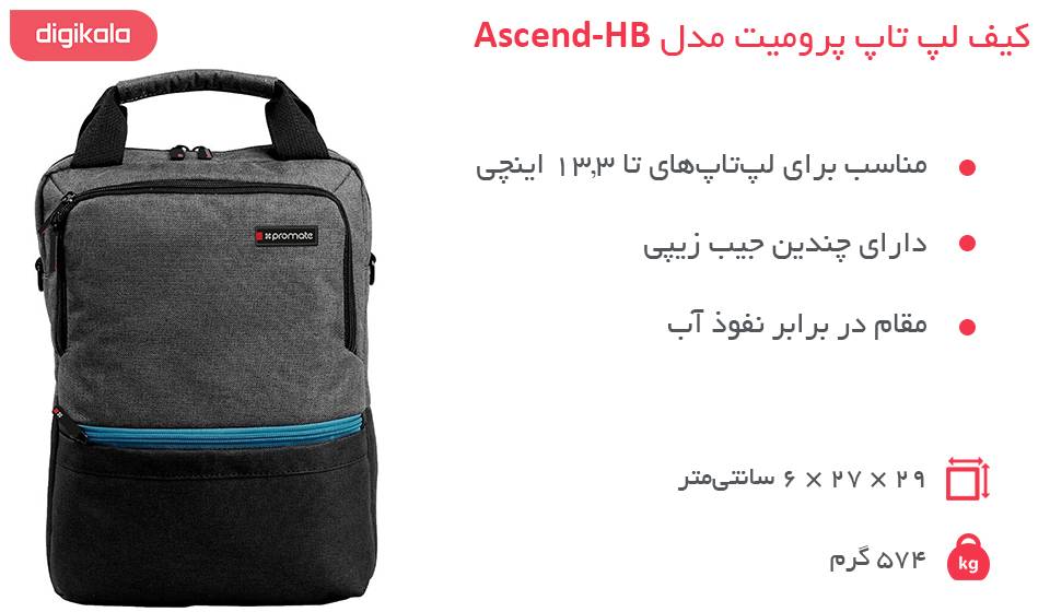 مشخصات فنی Promate Ascend-HB Bag For 13.3 Inch Laptop