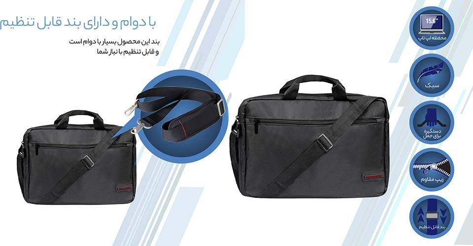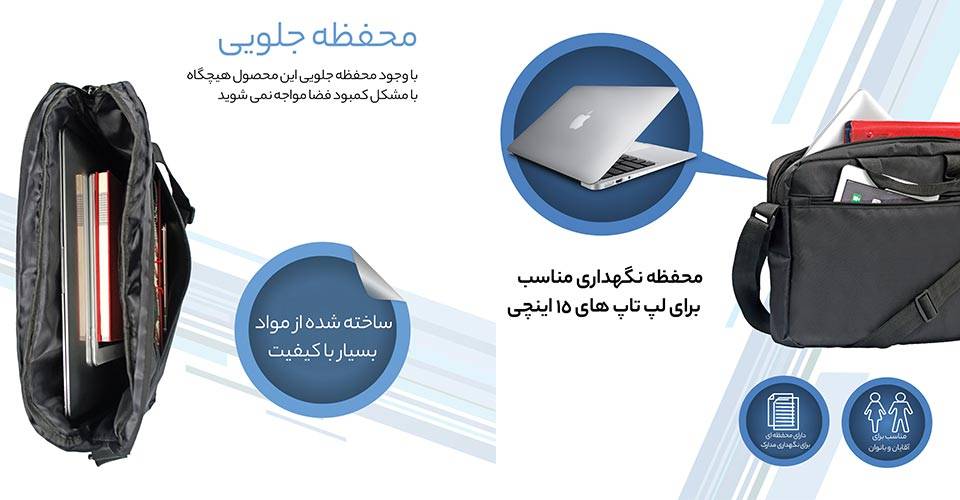 در انتخاب کیف مناسب برای لپتاپ، وزن مشخصهی بسیار مهمی است. معمولا لپتاپ و اقلام همراهش وزن قابل توجهی دارند و اگر کیفی که برای حمل آن انتخاب میکنید سنگین باشد، کار شما را دشوارتر میکند. شرکت «پرومیت» در طراحی کیف پستچی مدل «Gear-MB» خود توجه ویژهای به این ویژگی داشته است. این کیف سبک وزن کیفیت ساخت خوبی دارد و با داشتن بند رودوشی بادوام و قابل تنظیم برای حمل انواع لپتاپهای سنگین مناسب است. علاوهبر بخش اصلی کیف که برای قراردادن لپتاپهای 15.6اینچی و کوچکتر مناسب است، از زیپ جلوی Gear-MB نیز میتوانید برای قراردادن تبلت و سایر وسیلههای کوچک خود مانند کیف پول و خودکار بهره ببرید. اگر به دنبال خرید کیف لپتاپ باکیفیت، سبک و جمعوجور هستید، Gear-MB میتواند شما را راضی کند.