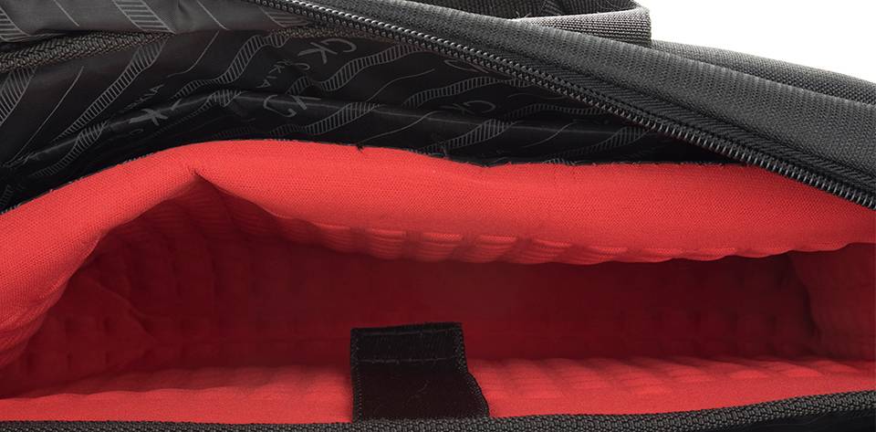 همانطور که گفته شد در پشت کیف هیچ محفظه یا جیبی وجود ندارد، اما در قسمت جلویی کیف دو محفظه جداگانه وجود دارد. یک محفظه کوچک با یک زیپ عمودی که البته فضای زیادی برای قرار دادن وسایل مختلف را ندارد و به نظر میرسد برای پول و مدارک مناسب است. در زیر این جیب یک محفظه بزرگ تقریبا سرتاسری وجود دارد که از دو طرف دسترسی دارد. البته از آنجایی که این محفظه هیچ زیپ یا درپوشی ندارد بهتر است وسایل مهم و ارزشمندتان را در آن قرار ندهید و برای گذاشتن کاغذ خوب است. بیشترین فضای محفظه اصلی هم به محل قرارگیری لپتاپ اختصاص داده شده است. فضای بزرگی که از دو طرف و از پایین توسط لایههای ابری و نرمی پوشانده شده است. به همین دلیل میتوان به میزان محافظت این کیف از لپتاپ نمره قبولی داد. البته همچنان باید مراقب ضربهها و فشارهای شدید باشید که به احتمال زیاد به لپتاپتان آسیب خواهد رساند. در کنار این لایه محافظت شده یک فضای دیگر برای قرار دادن شارژر لپتاپ و ماوس هم به چشم میخورد و یک جیب برای ابزارهای کوچکتر مانند فلش مموری و هارد اکسترنال و پاوربانک هم در همین قسمت تعبیه شده است.