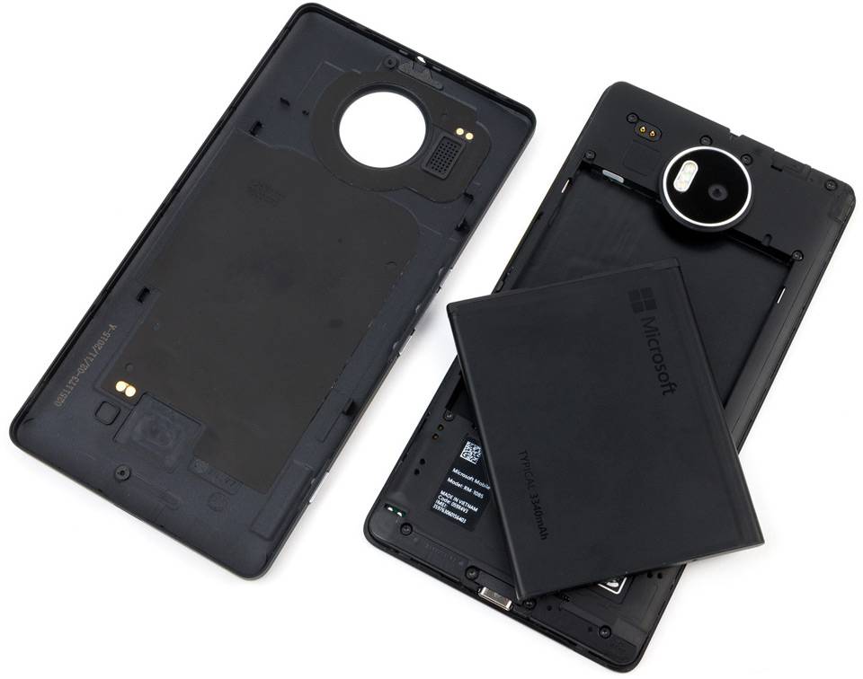 به جرات می‌توان گفت ضعیف‌ترین بخش در تولید لومیا 950XL، طراحی و ساخت آن است. پلاستیکی بی کیفیت و مات برای ساخت قاب پشتی استفاده شده که استعداد بالایی در جذب خط‌و‌خش دارد. اما اثر انگشت و عرق را جذب نمی‌کند. این قاب مثل اکثر لومیا‌های گذشته قابلیت باز شدن دارد تا بتوانید باتری گوشی را تعویض کنید. دوربین هم فضای زیادی به خود اختصاص دادهاست. دوربین در دایره‌ای بزرگ‌تر از آن‌ چیزی که باید باشد جاسازی شده که طراحی کلی قاب پشتی را تحت تاثیر قرار داده است. این دایره‌ی بزرگ در حدود دو میلی‌متر از قاب پشتی گوشی بیرون زده است. یعنی دو میلی‌متر به ضخامت 8 میلی‌متری گوشی اضافه کرده است و باعث شده بالا و پایین گوشی روی سطوح صاف ارتفاع متفاوتی داشته باشند.