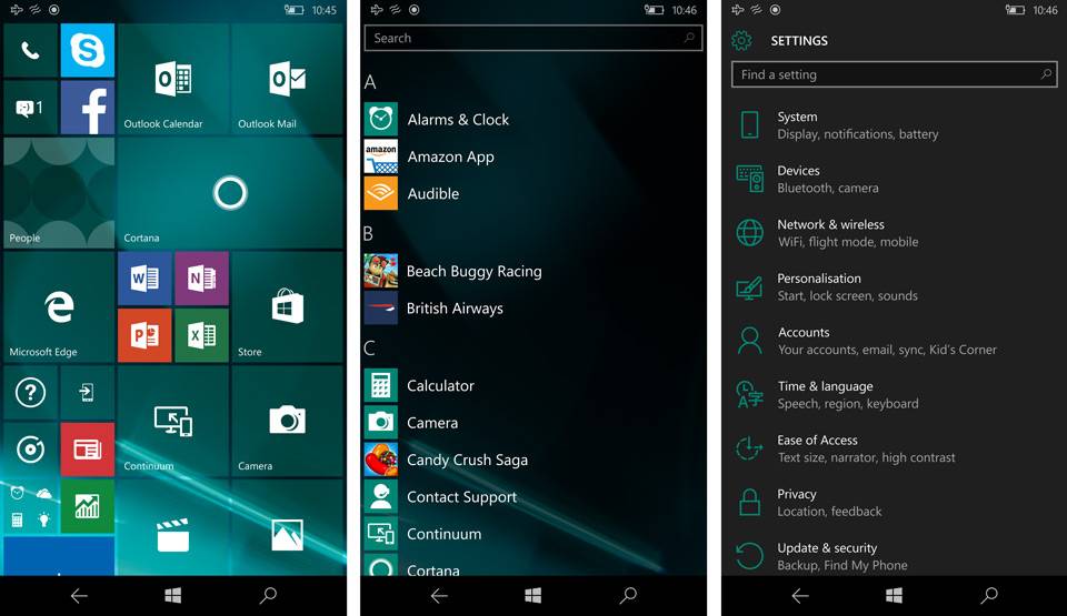 با ادای احترام به طرف‌داران اندروید و iOS باید گفت اکنون رقیب جدی‌تری به نام ویندوز 10 دارند. ویندوز 10 با یکپارچه شدنش بین تمام دستگاه‌هایی مثل کامپیوتر‌های شخصی، تبلت‌ها و حالا گوشی‌های تلفن‌همراه پیشرفت قابل‌توجهی کرده است. از عوض شدن شکل و شمایل کاشی‌ها گرفته تا طرز باز و بسته شدن منو‌ها. حالت نمایش کلی کاشی‌ها دچار تغییر شده‌ اما اندازه‌ها همان‌هایی هستند که قبلا در ویندوز 8.1 دیده بودیم. افکت‌ها و انیمیشن‌ها تغییر کرده‌اند و بسیار جذاب‌تر از گذشته شده‌اند، جوری که دوست دارید با منوی استارتان بازی کنید. بخش «اعلان‌ها» (Notifications) هم تغییر کرده و حالا می‌توانید امکانات ارتباطی گوشی را سریع‌تر کنترل کنید و با نگه داشتن انگشت روی هر کدام مستقیم به تنظیمات آن بخش وارد شوید.