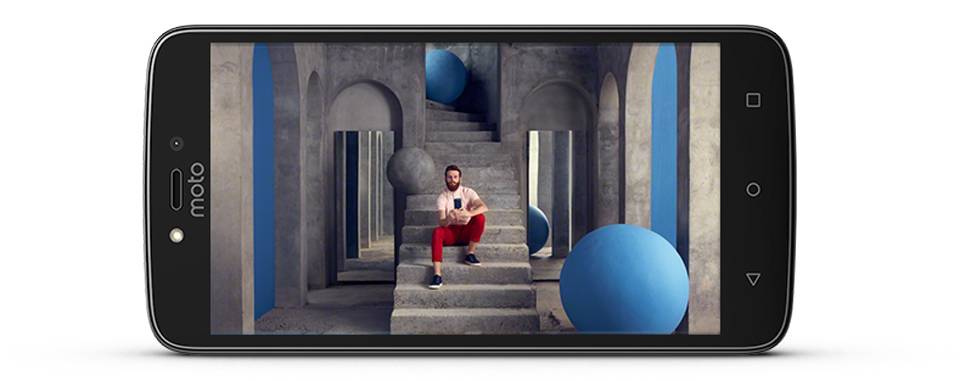 صفحه‌نمایش ۵اینچی موتو سی پلاس و تراکم ۲۹۴ پیکسل در هر اینچ آن نشان می‌دهد که نمایشگر موتو سی پلاس یک گوشی میان‌رده‌ی تمام‌عیار است و در رده‌ی کاربری خود چیزی از رقبا کم ندارد. با این گوشی می‌توان فیلم دید، بازی کرد، به مطالعه و وبگردی پرداخت.