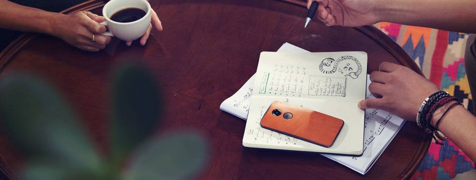اما قاب پشتی جایی است که موتورولا هنر طراحی خود را در آنجا به نمایش گذاشته است. قاب پشتی از چرم ساخته‌شده، این چرم از جنس مرغوبی است و کم‌تر پیش می‌آید که به‌غیراز وسایل تیز روی آن تاثیری داشته باشد. هر خط‌و‌خشی را هم می‌توان به‌سادگی با یک پارچه‌ی خیس تمیز کرد. نوآوری دیگر قرار دادن فلش دوربین به دور عدسی آن است. همین باعث شده که روی قاب پشتی فقط دو دایره وجود داشته باشد. یکی دوربین اصلی همراه با فلش‌اش و دیگر هم برند موتورولا است. همین سادگی جذابیت خاصی به قاب پشتی داده است.