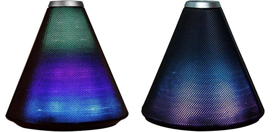 نورهای رنگی اسپیکر Alonso یکی از قابلیت تنظیم در چهار الگوی مختلف را دارند. البته همانطور که میدانید روشن بودن نورهای LED باعث میشود که باتری دستگاه عمر کوتاهتری را داشته باشد. سادهترین و آسانترین راه اتصال تلفن همراه یا دستگاههای ازایندست به اسپیکر Alonso A5 ، فناوری بلوتوث است. درصورتیکه میخواهید از این اسپیکر بدون نیاز به تلفن همراه استفاده کنید، میتوانید از شیار کارت حافظهای که در قسمت پایینی مخروط تعبیهشده استفاده کنید. در کنار این شیار، ورودی صدای 3.5 میلیمتری نیز دیگر ورودی سنتی برای این اسپیکر محسوب میشود. دکمه پاور و کلید کنترلکننده نور اسپیکر در قسمت زیرین آن جای گرفتهاند.