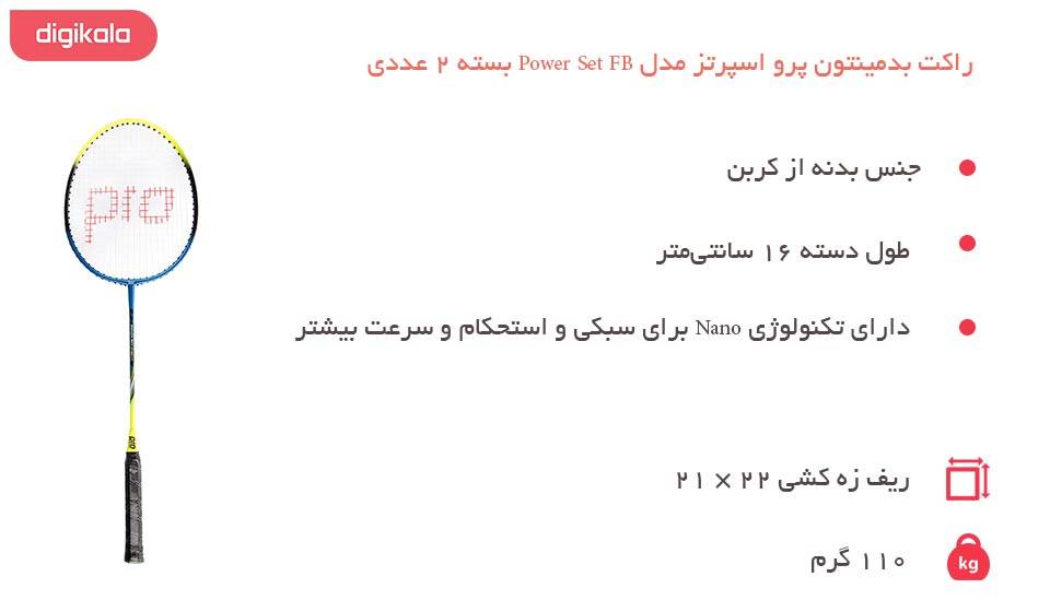 ویژگی‌های کلی راکت بدمینتون پرو اسپرتز مدل Power Set FB بسته 2 عددی