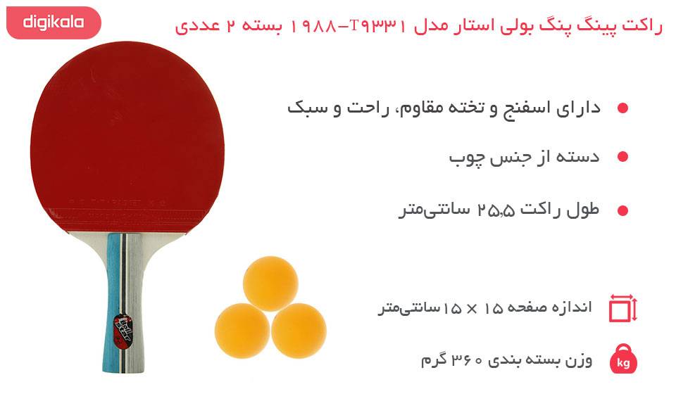 مشخصات کلی راکت پینگ پنگ بولی استار مدل T9331-1988 بسته 2 عددی