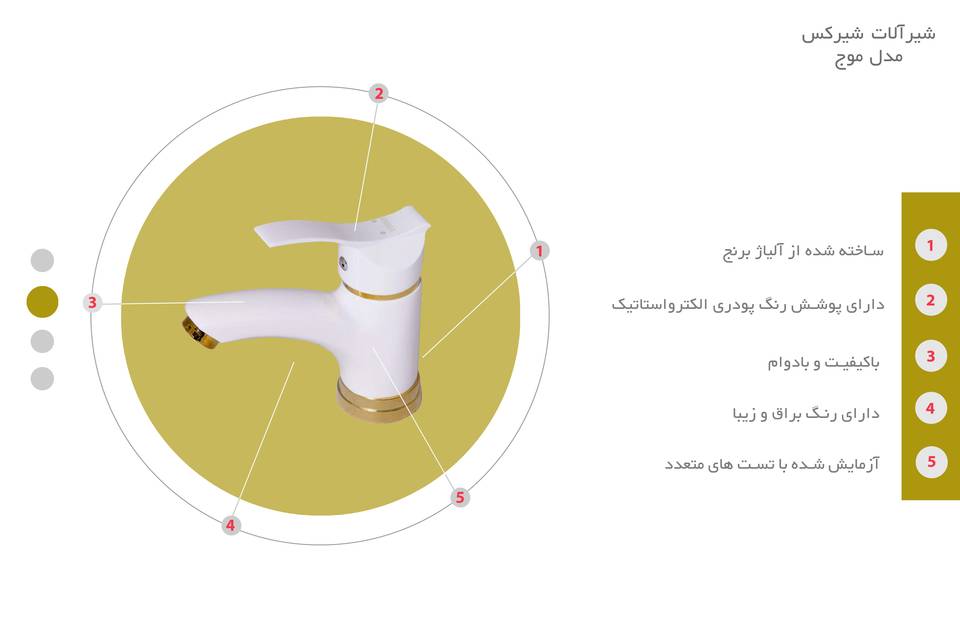 یکی از مهمترین مواردی که در خرید شیرآلات باید به آن توجه داشت علاوهبر زیبایی، آنالیز مواد مصرفی در محصولات است. شیرآلات Shirex مدل موج یکی از محصولات برند شیرکس است که با کیفیت بالایی تولید شده و جنس آن نیز از آلیاژ برنج است. حتی کوچکترین قطعات برنجی در محصولات نیز مورد آنالیز قرارگرفته تا آسایش و سلامتی را برای شما به ارمغان آورد. شایان ذکر است کلیه محصولات برند "شیرکس" در حین تولید چندین بار تحت آزمایشهای کنترل کیفی با دستگاههای مدرن قرار میگیرد و با قراردادن چند واحد کنترل کیفی در خط تولید، اطمینان کامل قبل از بستهبندی محصول حاصل میشود. این مجموعه محصولات با بهکارگیری آلیاژ برنج و دستگیره از جنس زاماک و همینطور رنگ پودری الکترواستاتیک و آبفشان تمامی انتظارات مشتریان از مجموعه شیرآلات را تامین میکند. نوع رنگ این مجموعه براق بوده و از جلوه و زیبایی خاصی برخوردار است. اگر بهدنبال شیرآلات باکیفیت برای منزل خود هستید، میتوانید این مجموعه را انتخاب نمایید.