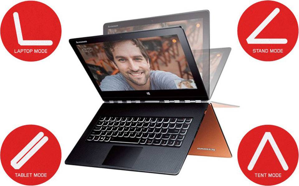 بدونشک مهمترین وجه تمایز لپتاپهای تبدیلشونده با لپتاپهای معمولی در طراحی بدنه آنها است. دستگاههایی که با چرخش یا جدا شدن صفحهی نمایش به یک تبلت تبدیل شده یا درحالت غیرمعمولی رویمیز قرار میگیرند. طراحی Yoga 3 Pro، مانند دو نسل قبلی این محصول، به گونهای است که صفحهی نمایش از بدنه جدا نمیشود، بلکه با چرخش حدود 360 درجه حول محور لولای متصل کننده این دو قسمت، به حالتهای مختلف درمیآید. چهار حالت کلی توسط خود شرکت لنوو معرفی شده که عبارتند از لپتاپ (Laptop)، ایستاده (Stand)، خیمه (Tent) و تبلت (Tablet). البته بسته به نوع یا شرایط استفاده از دستگاه میتوان آن را در حالتهای دیگری هم قرار داد و محدودیتی برای این مورد وجود ندارد.