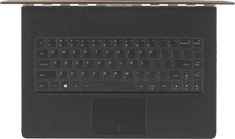 با اینکه بهنظر میرسد برای کار با این دستگاه صفحهی نمایش لمسی آن بیشتر مورد استفاده قرار گیرد، اما با این حال نمیتوان از کیبورد و تاچپد و نقش مهم آنها در کاربری بهتر Yoga 3 Pro غافل شد. مانند باقی قسمتهای بدنه، لنوو برای بخشهای کیبورد و تاچپد هم سعی بر این داشته که از نمونههای باکیفیت و مرغوب استفاده کند. با وجود فضای کم، خوشبختانه کیبورد از نوع جزیرهای با کلیدهای بزرگ است که میتوان با دقت و سرعت بالایی با آن تایپ کرد. البته طبیعتا نباید انتظار دیدن کلیدهای ماشین حساب را در این کیبورد داشته باشید. مجموعه کلیدهای Fn هم به صورت جداگانه وجود ندارند و در حالت ترکیبی روی کلیدهای اعداد بالای کیبورد قرار گرفتهاند. به همین دلیل دیگر فضایی برای کلیدهای درسترسی سریع مالتیمدیا وجود نداشته و این مجموعه کلیدها حذف شدهاند. کیبورد این محصول مجهز به نور پسزمینه است که با فشار همزمان کلید Fn و Space روشن و خاموش میشود و نمیتوان میزان نور آن را کم و زیاد کرد. در مجموع کار با کیبورد این دستگاه رضایتبخش است.