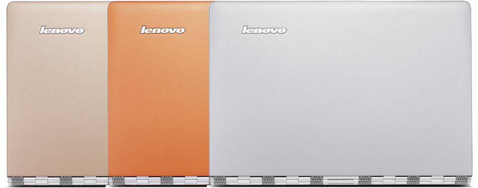 لنوو Yoga 3 Pro را در سه رنگ نقرهای، نارنجی و بژ تولید کرده است. به این ترتیب که قاب زیرین دستگاه و قاب پشت صفحهی نمایش، رنگی با روکش مات بوده و فضای اطراف کیبورد و قاب دور صفحهی نمایش مشکی است. استفاده از روکش مات و طرحدار در تمامی قسمتها باعث جذب کمتر اثر انگشت شده است که برای چنین محصولی که دائما در دست و در حال جابجاییست، یک ویژگی ایدهآل محسوب میشود.
