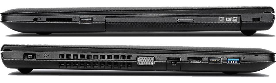 مثل بسیاری از لپتاپهای لنوو ورودیهای سری Z5075 دارای 2 پورت USB 2.0 و یک پورت USB 3.0 است. همچنین خروجی HDMI این محصول به شما این اجازه را میدهد تا با استفاده از کابل، تصاویر دلخواهتان را بدون کوچکترین تغییر در اندازههای بزرگ بهوسیله تلویزیون یا پروژکتور مشاهده کنید. از دیگر پورتهای این دستگاه، کارتخوان دو کاره است که با آن میتوانید از اطلاعات کارتهای حافظه SD یا MMC استفاده کنید. برای ارتباط بیسیم نیز، لنوو سری Z5070 را به نسل چهارم فنآوری بلوتوث و Wi-Fi با استاندارد b/g/n مجهز کرده است. مشکل بزرگی که در لپتاپ سری Z510 وجود داشت محدودیت سرعت Ethernet بود که این مشکل در Z50-75 رفع شده و سرعت آن تا 1000 kbps افزایش یافته است.