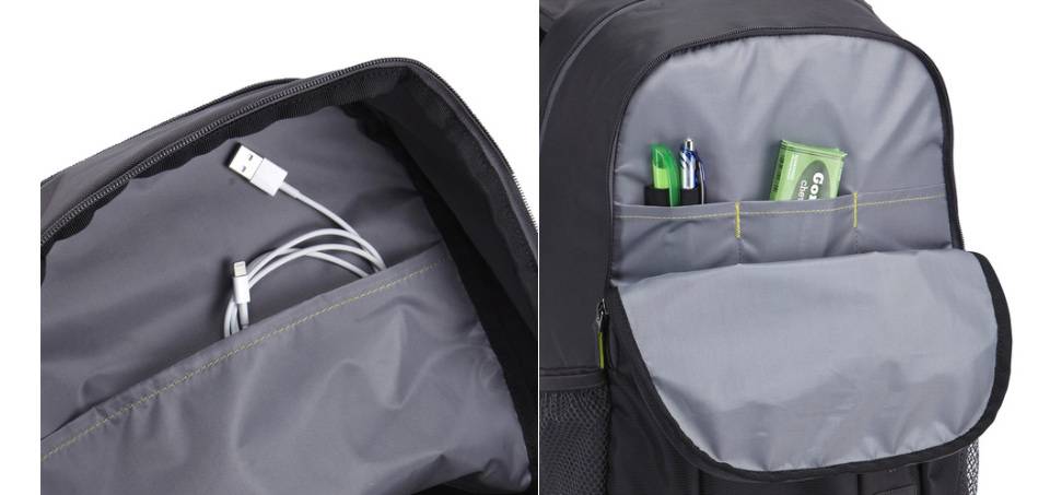 در قسمت زیرین بندهای این کولهپشتی از بندهای طبی استفاده شده است تا در درازمدت از خستگی کاربر جلوگیری کند. همچنین قسمت پشتی Jaunt WMBP -115 نیز ساختاری نرم دارد تا حس خوشایندی را به کاربر منتقل میکند. کیس لاجیک برای هر یک از لوازم جانبی شما فکری کرده است. جای مخصوص گوشی موبایل، شارژر لپتاپ، خودکار و کیف پول باعث میشود که شما حتی لحظهای را برای پیدا کردن آنها در کیف خود هدر ندهید و به راحتی به آنها دسترسی داشته باشید. یکی دیگر از ویژگیهای این کوله پشتی دو جیب توری در طرفین آن است که برای قرار دادن قمقمه و بطری آب قابل استفاده است.